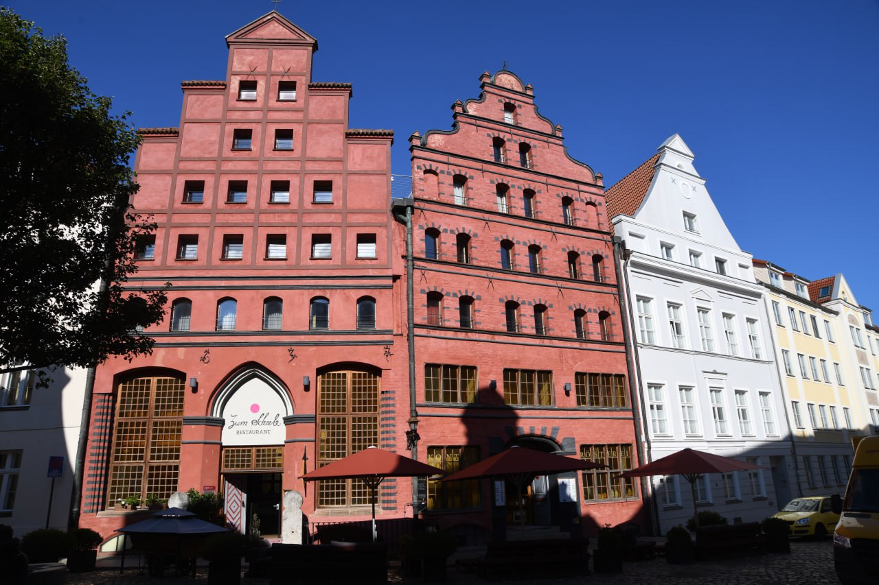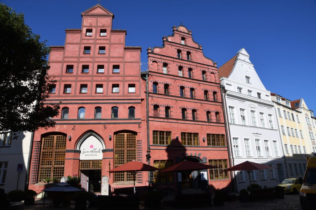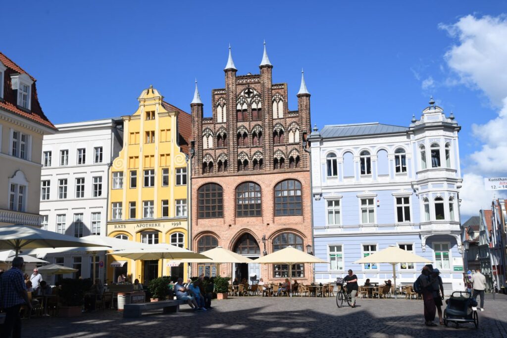 Gegen Mittag kamen wir in Stralsund an, wo wir gut vier Stunden Aufenthalt haben würden. Genug für eine gemütliche Runde durch die sehenswerte Altstadt (leider nicht genug für das große Ozeaneum mit seinen gut 50 Aquarien – das müssen wir uns wohl für unseren nächsten Aufenthalt in der Stadt aufheben). Als Mittagessen haben wir uns Fischbrötchen gegönnt – in der Tat die ersten, die wir hier überhaupt gegessen haben. Bisher haben wir entweder keine gefunden oder wir hatten kurz vorher schon etwas anderes (im Zweifel Kuchen…) gegessen, so dass wir keinen Appetit mehr darauf hatten. Wir haben sie auch ordnungsgemäß mit Bismarckhering (der aus Stralsund kommt) belegen lassen.