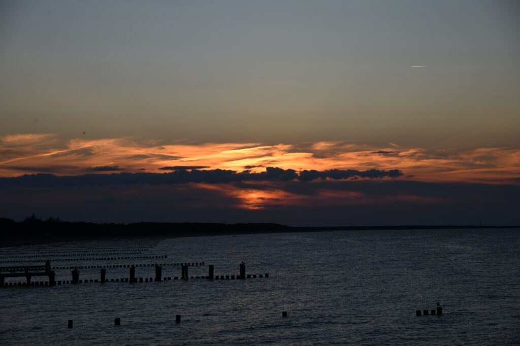 Zurück in Zingst haben wir dann noch einen kurzen Abstecher zur Seebrücke unternommen, nachdem wir festgestellt hatten, dass der Sonnenuntergang kurz bevorstand. Den Untergang im Meer konnten wir leider wolkenbedingt nicht sehen, aber auch so war die Ansicht noch mal ganz nett. Und danach wollten wir dann auch so langsam zum Zelt zurück – wir mussten schließlich noch essen und es wurde dann doch langsam dunkel (und dann werden die Blutsauger noch aktiver als sonst schon).